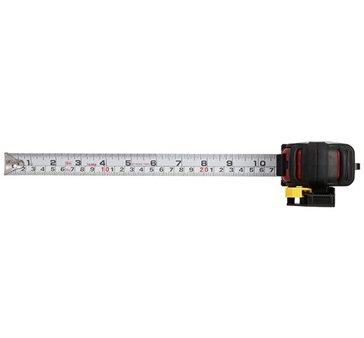 - Thick elastomer case armor extends around the body of the tape measure to protect end hooks and work surfaces